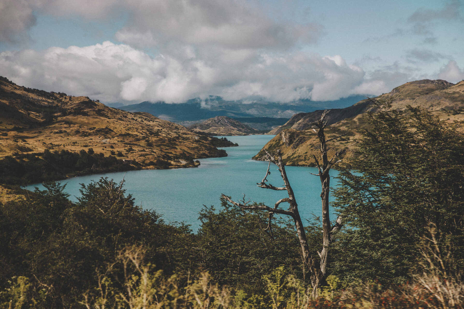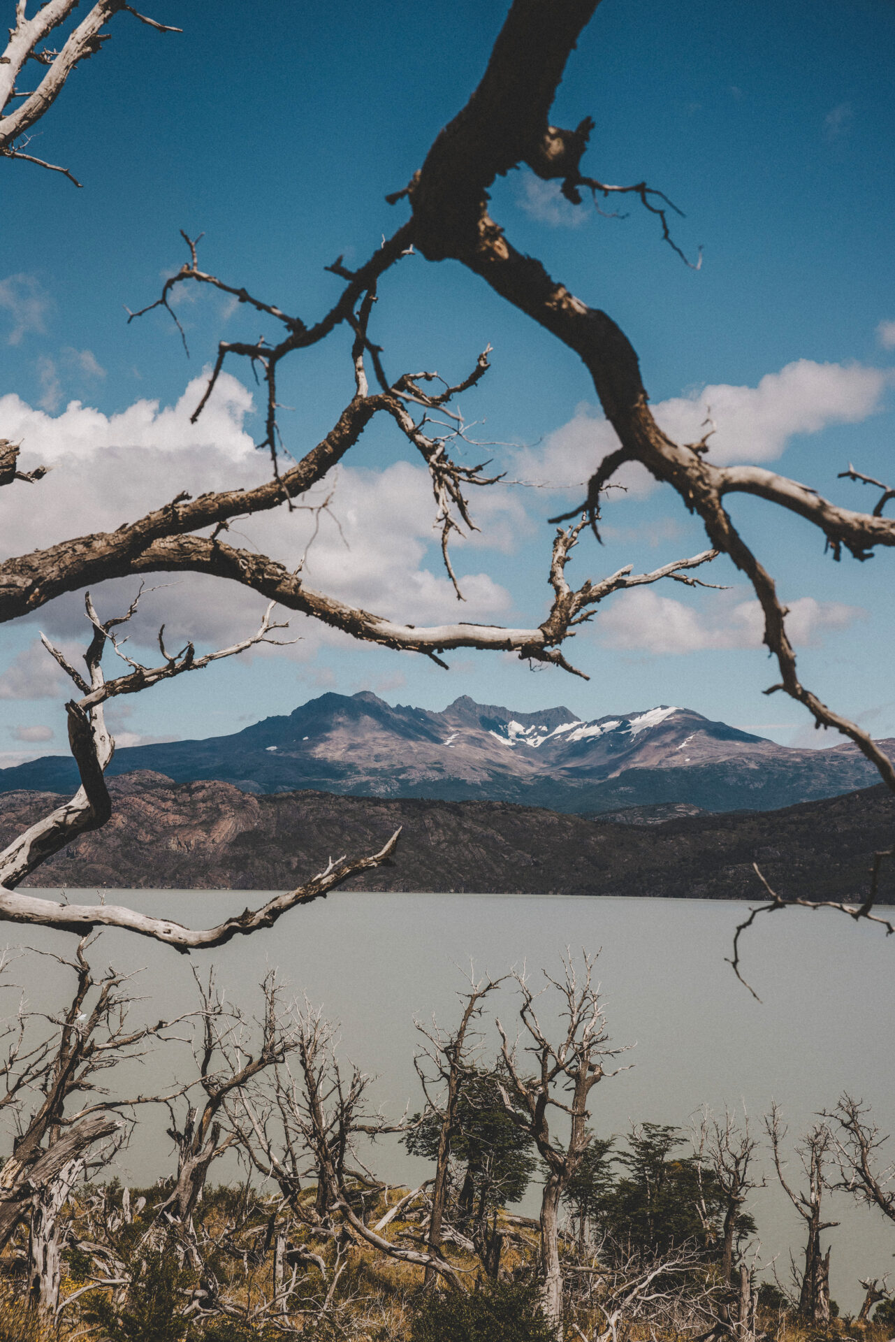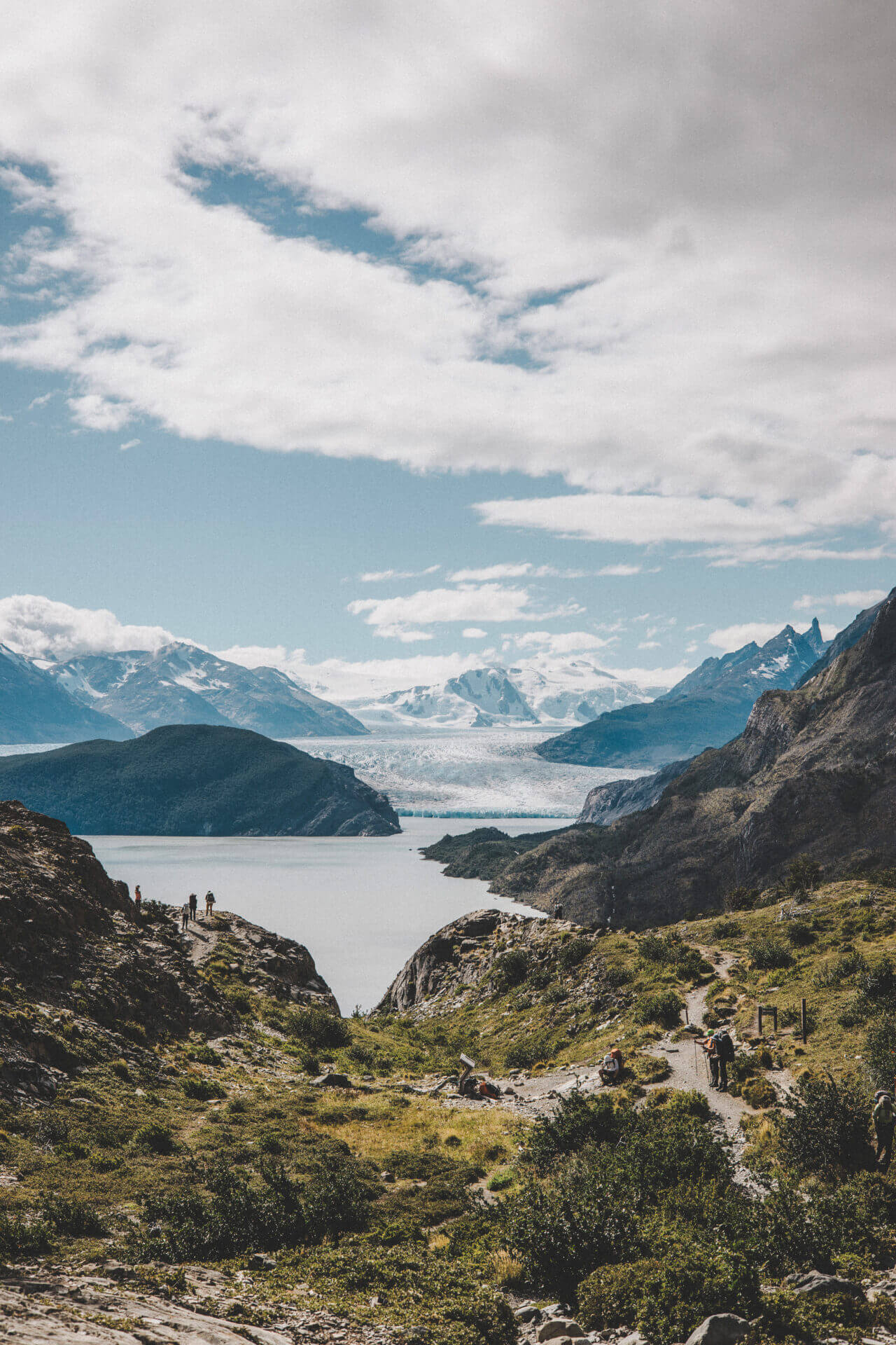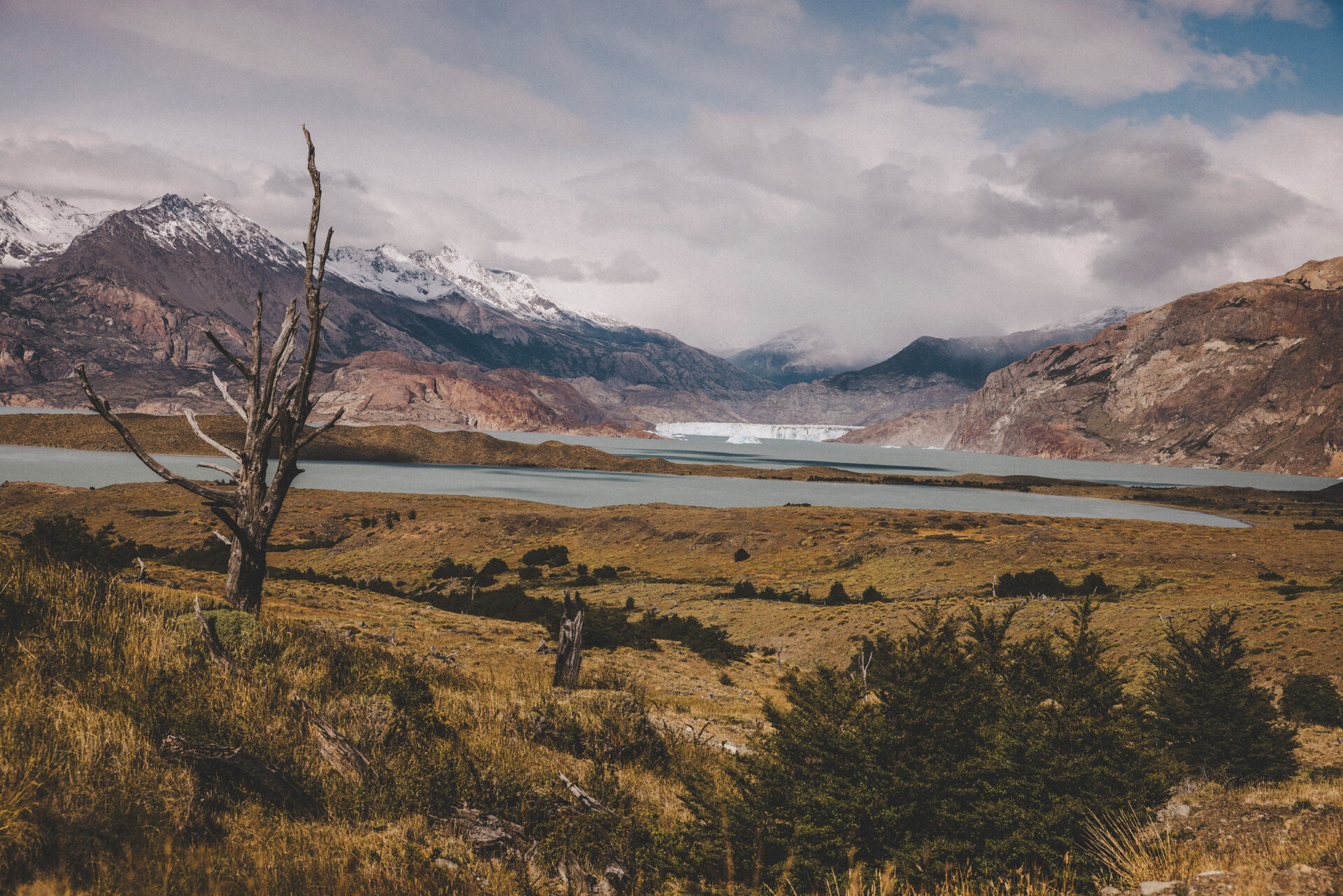 Vi tar en buss till Torres Del Paine National Park och sedan en båt till Grey Glacier där vi påbörjar W trekken! Bussresan bjuder på trevliga vyer och snart kommer vi vara mitt bland dem. Vi vandrar längs Lago Grey till Paine Grande där vi slår läger för natten.