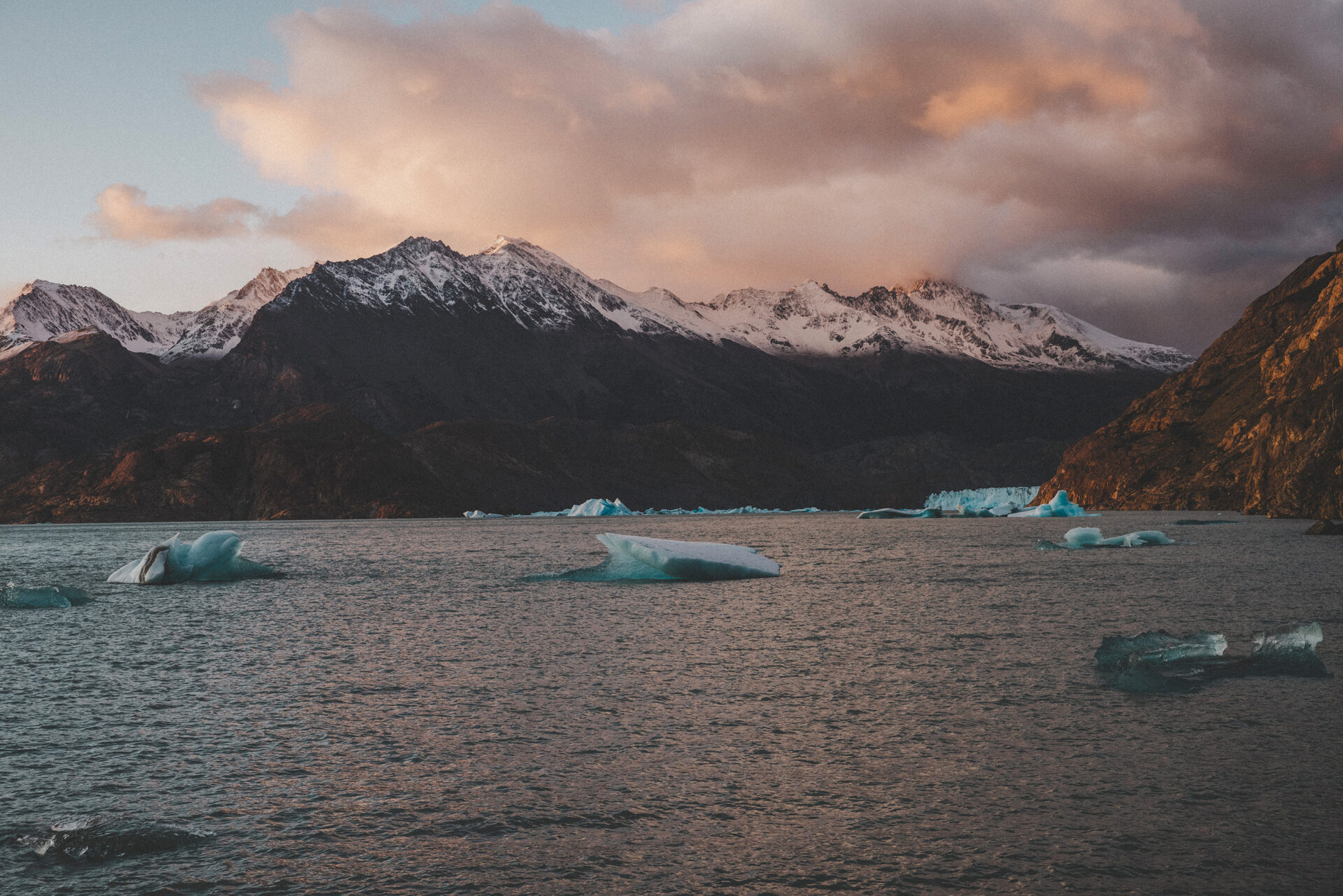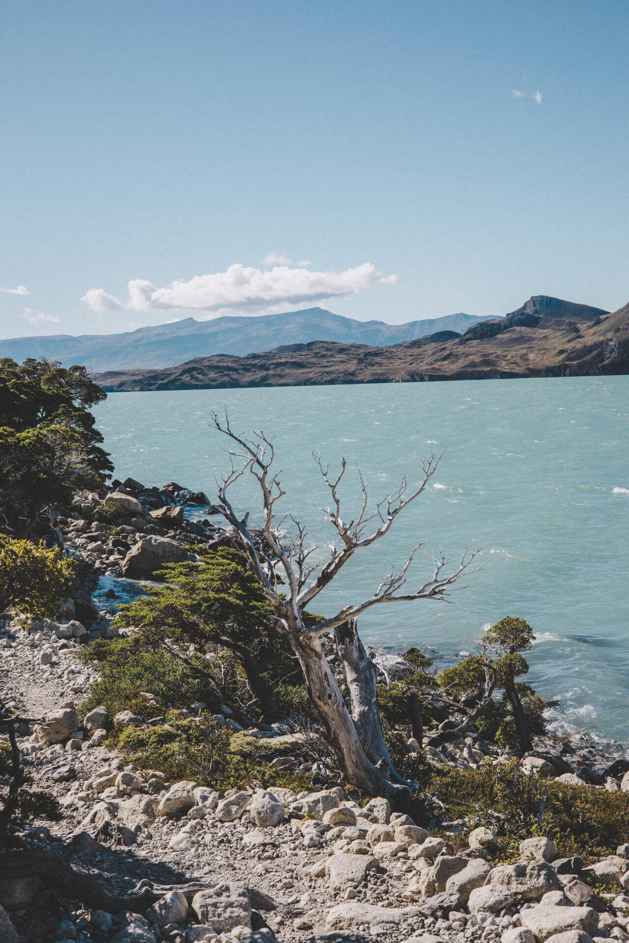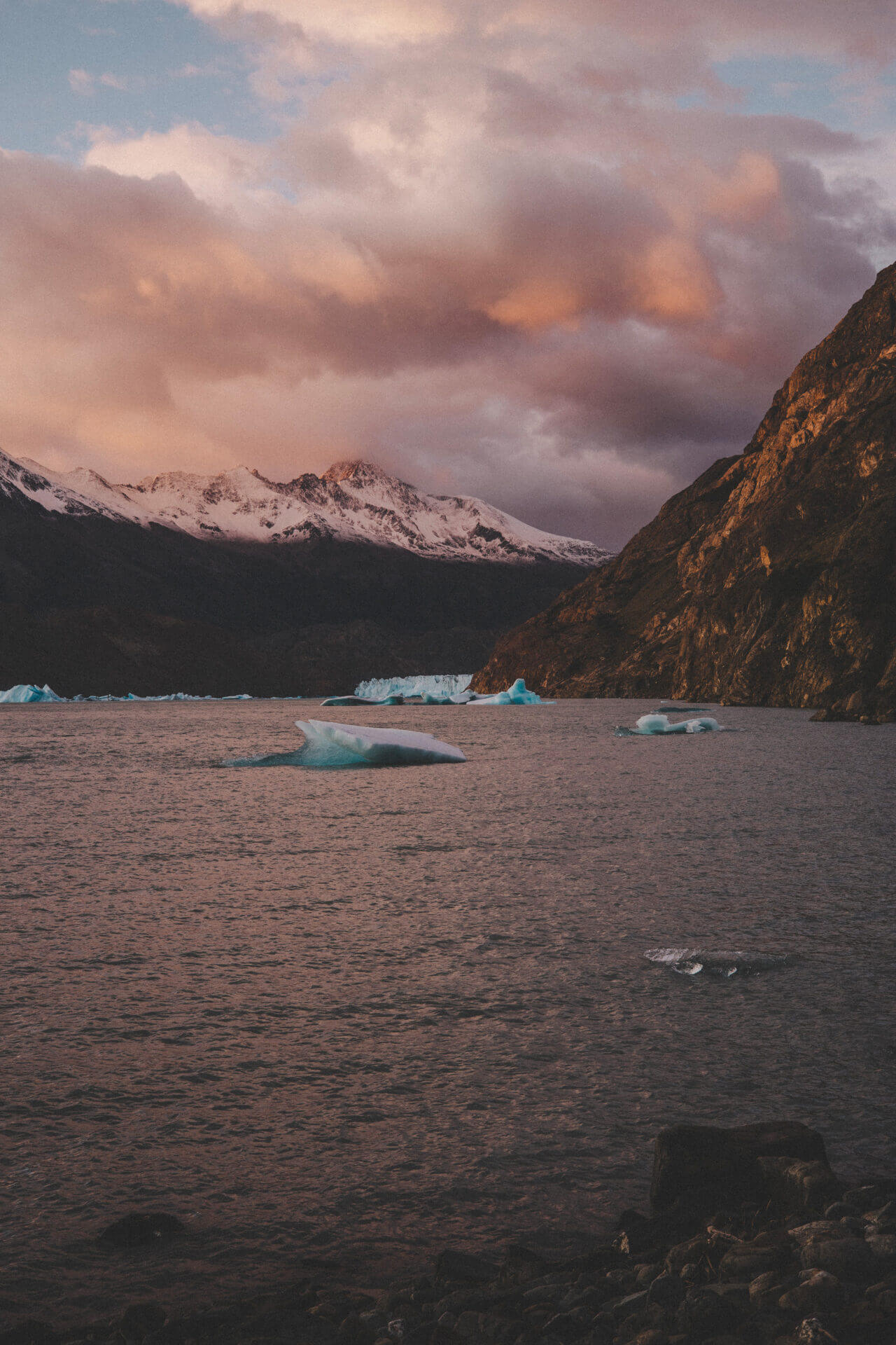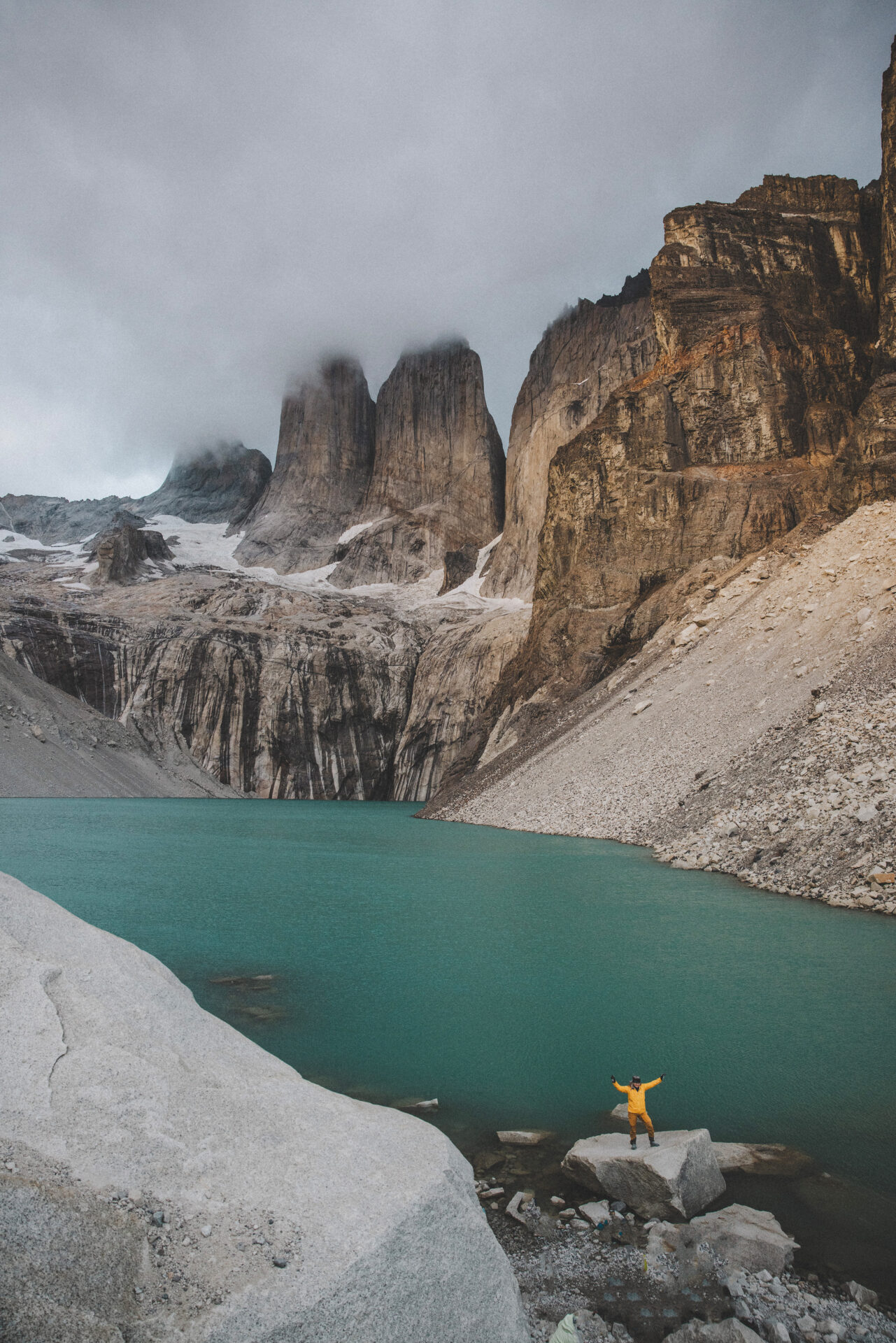 Vi vandrar längs Lago Nordenskjöld med sin turkosa färg till Central där vi spenderar natten. Det här ger oss ett utmärkt ursprungsläge att gå upp till Mirador Torres i soluppgången och fånga när solljuset färgar de spetsiga topparna röda.