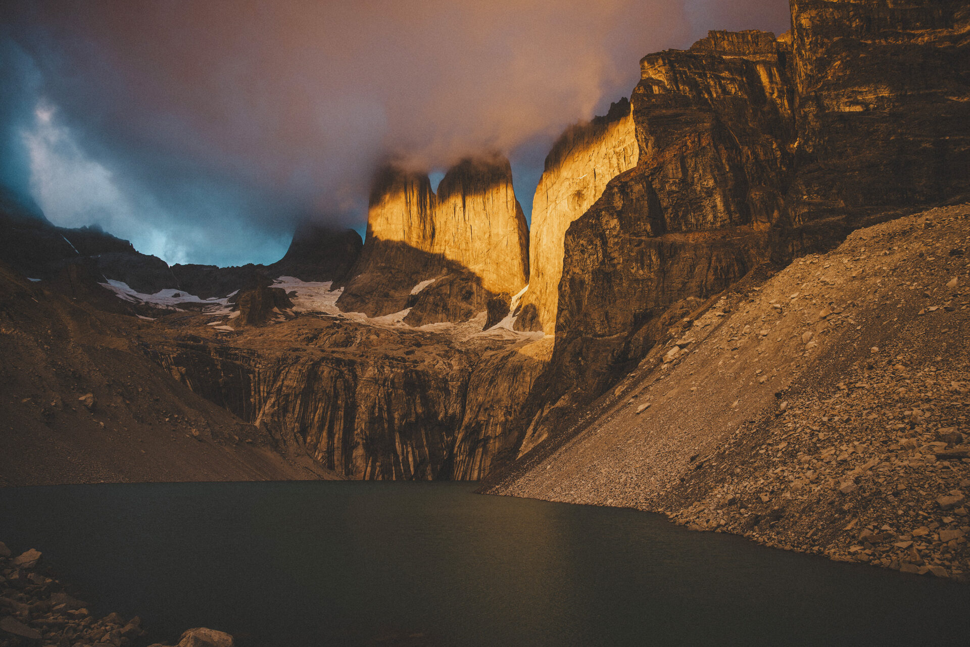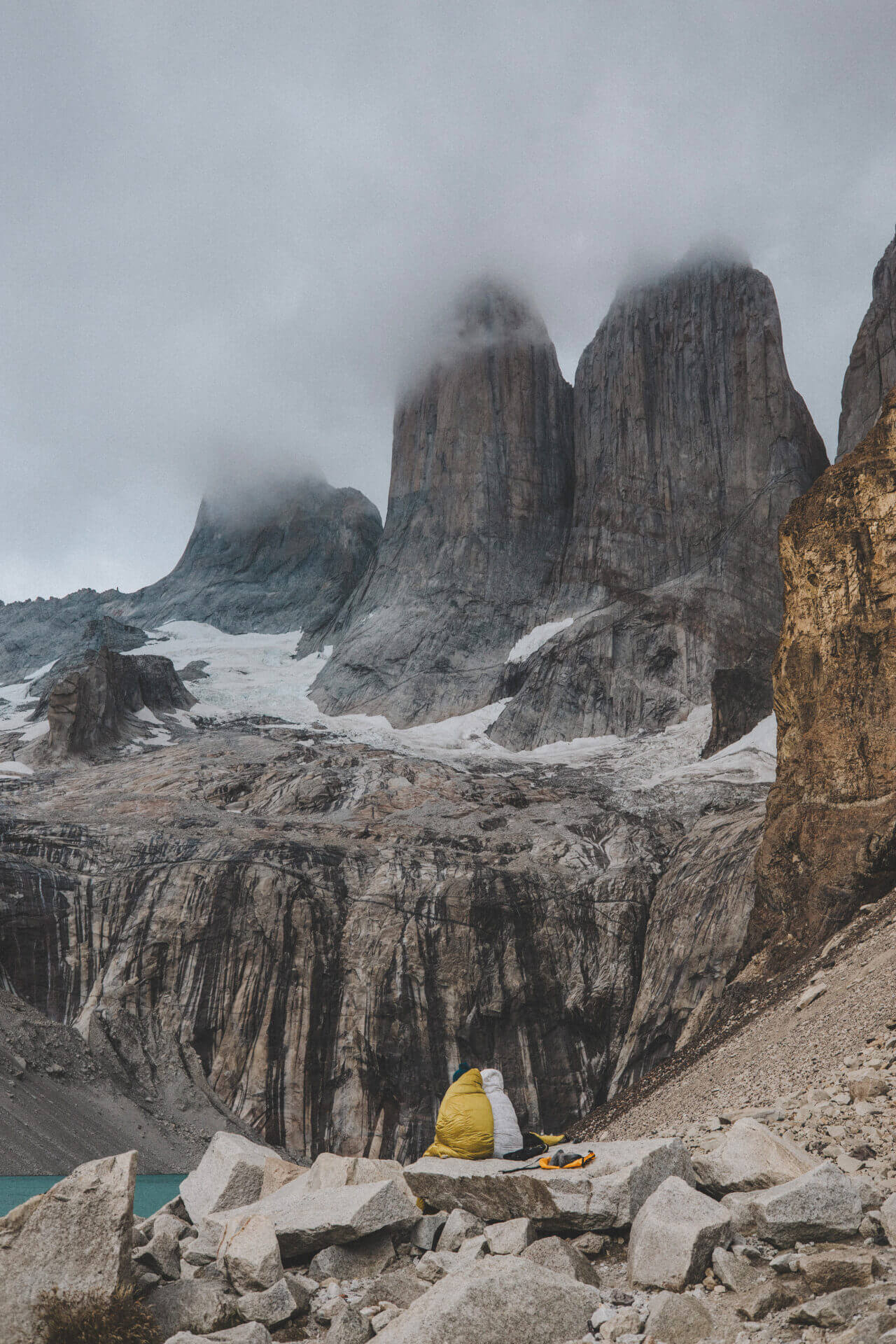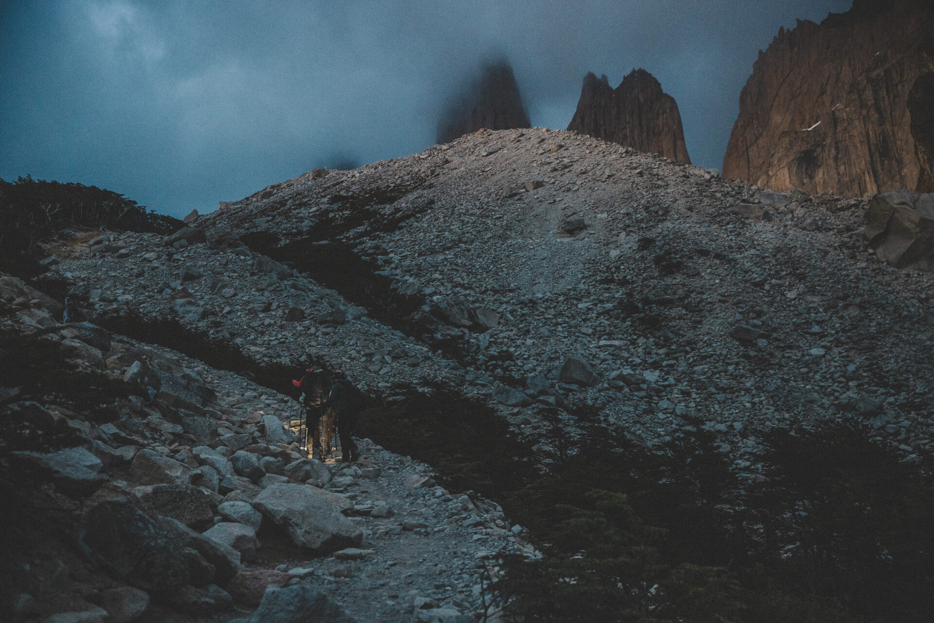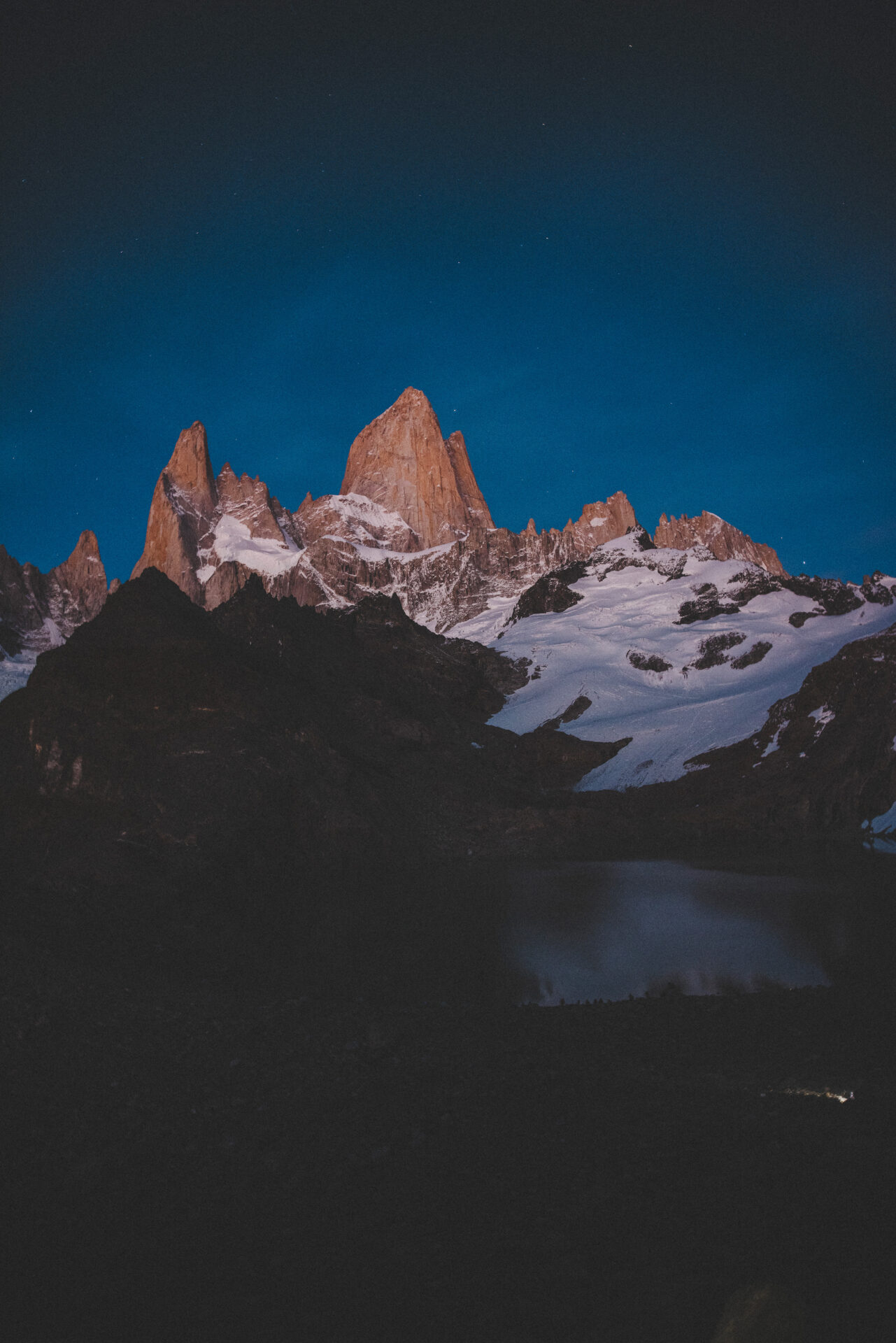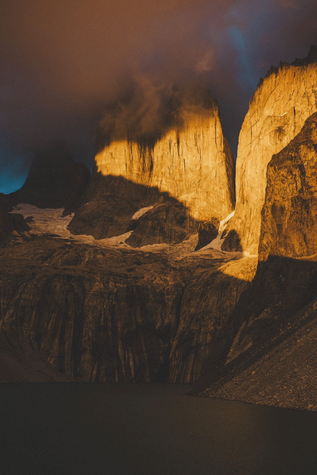 Vi ställer klockan tidigt, innan soluppgången för en alpin start. Vi vill tajma att befinna oss vid Mirador Torres lagom till soluppgången för att få chansen att bevittna något otroligt: När det första ljuset träffar topparna på Torre Sur & Norte. Landmärket för Torres del Paine. Den vackra glaciärsjön framför topparna ger fantastiska bilder.