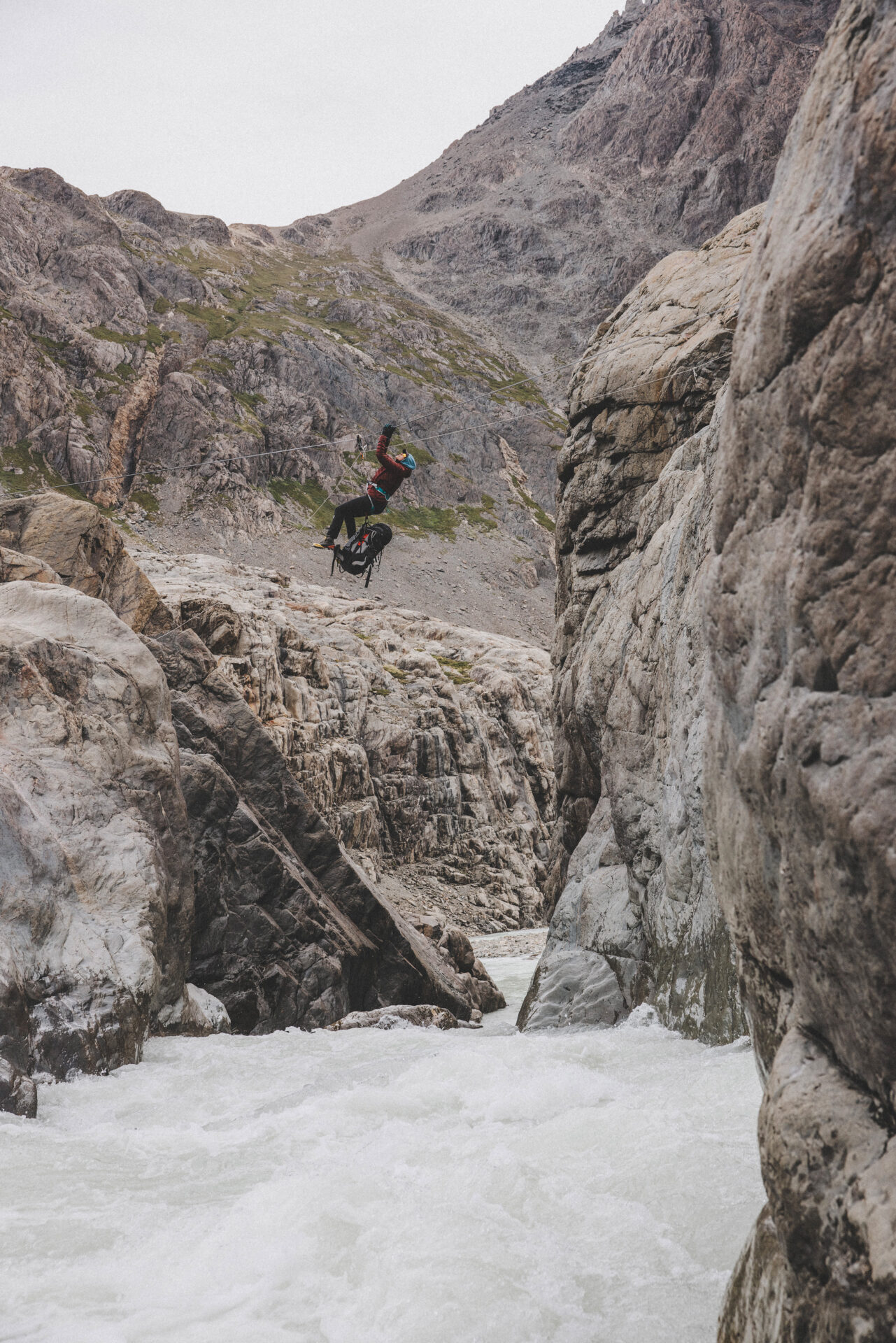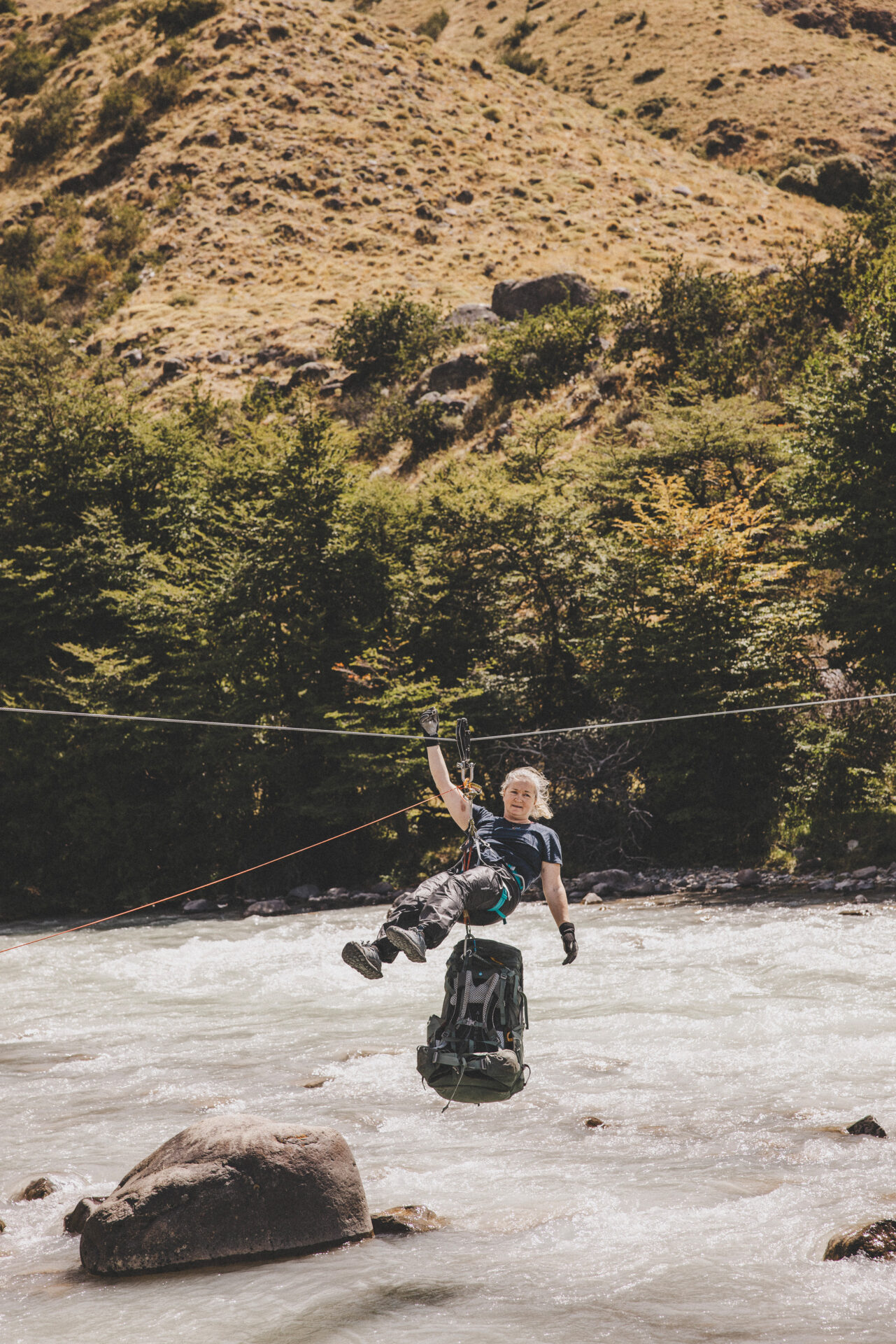 Det har blivit dags att påbörja nästa äventyr: Huemul Circuit. Höjdpunkten på Huemul Circuit är den oöverträffade utsikten över Southern Patagonian Ice Field, den näst största icke-polära ismassan i världen. Efter lite påfyllning av snacks och andra inköp beger vi oss iväg på en fem dagars tur runt Cerro Huemul. Dagens etapp börjar med en lättare zipline över en flod och är sedan enkel vandring till Bahiá de Hornos som är en magisk plats där vi campar precis vid en strand och det är fullt med isberg i sjön framöver oss. Verkligen vackert.